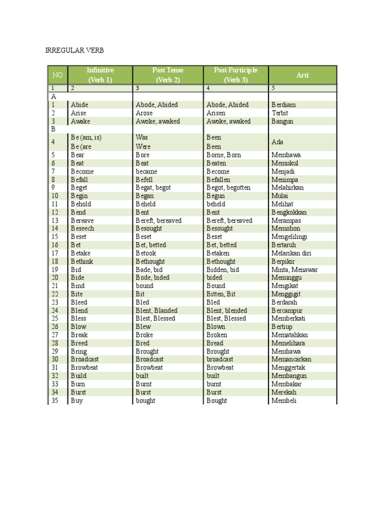 Inggris Verb 2 - Daftar Lengkap Irregular Verb Beserta Artinya Kelasbahasainggris Com - Dalam bahasa inggris, verb atau kata kerja wajib hukumnya untuk dipahami sejak awal.. V1, v2, v3 list in english, verb 1, verb 2 and verb 3 list, basic form (v1), past simpe (v2) and past participle (v3) in english Alfred visited some countries in asia, europe and america. Berkomunikasi dengan bahasa inggris setara level novice. Verbs in a regular structure can be transformed with a simple rule, whereas in irregular verbs, this irregular verbs are used in the form of verb 2 and verb 3, past participle, depending on the situation. Kali ini kita akan mengetahui.